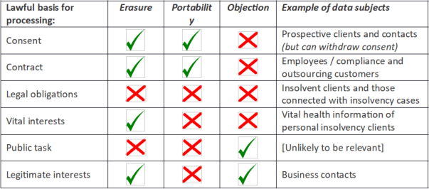 Your rights in relation to the personal data that we process will depend upon the lawful basis or bases upon which we are holding it. This will vary depending upon where the information has come from (yourself or a third party, such as the Official Receiver or Accountant in Bankruptcy) and the nature of our relationship with you. Personal data may be held for more than one lawful basis. Details of the basis or bases we believe we have for processing your data can be found in the relevant Privacy Notice and in our Data Processing Register.